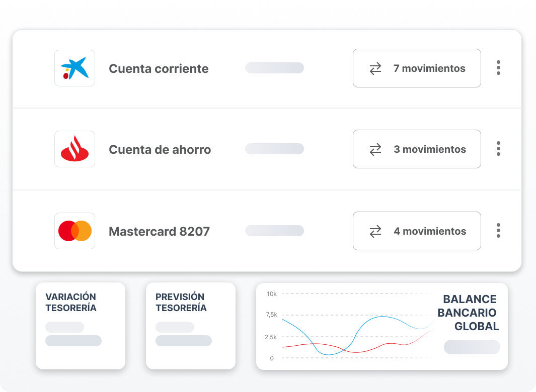 Empareja ingresos y gastos de forma rápida y segura, confirma las conciliaciones con un solo clic o crea facturas directamente desde el extracto bancario, simplificando el control de cobros y pagos. Además, analiza tus flujos de caja en tiempo real, mejora el control de liquidez y toma decisiones estratégicas basadas en datos precisos.